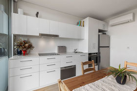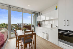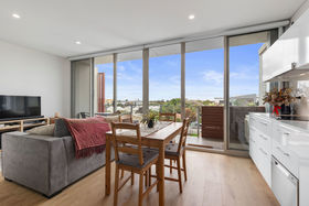 Step inside and be taken by light-filled open-plan living and dining, framed by floor-to-ceiling windows that capture expansive top-floor views. The sleek kitchen features stone benchtops, an electric cooktop, a convenient drawer dishwasher, and ample storage " perfect for easy everyday living or entertaining.